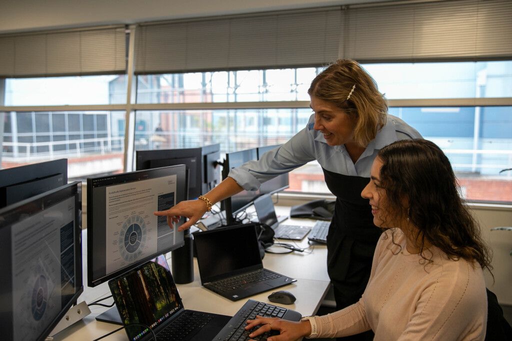 KordaMentha's Partner Alice Saveneh-Murray (left) and Swinburne student Julia Urban (right) preparing to fight financial crime.
